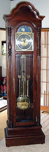 通常ホールクロックと呼ばれ15分ごとに素晴らしい音色のチャイムが鳴ります。15・30・45・60と叩く数が変化して60の時にはその後に時間の数だけ鳴ります。チャイムの曲も数種類変えられます。